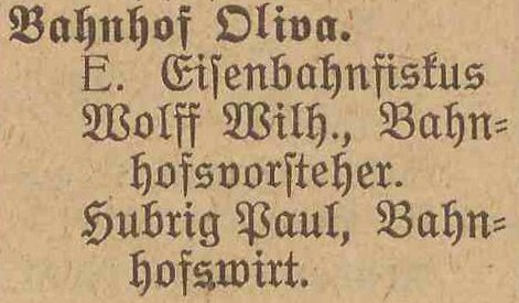 Bahnhof Oliva. Książka adresowa gminy Oliwa z 1909 roku. Zbiory Pomorskiej Biblioteki Cyfrowej.