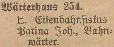 Książka adresowa z 1897 roku (Wärterhaus 254):