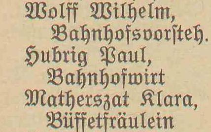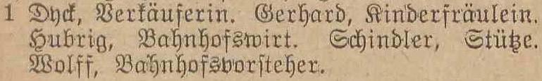W (Bahnhof): Wolff (1 osobę).