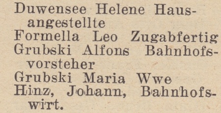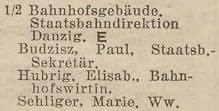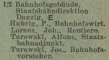 Bahnhof. Książka adresowa gminy Oliwa z 1916 roku. Zbiory Mirosława Piskorskiego.