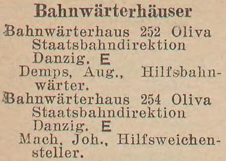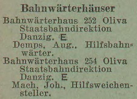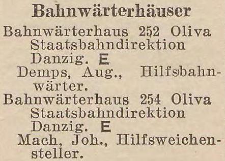.jpg) Bahnwärterhäuser. Książka adresowa gminy Oliwa z 1916 roku. Zbiory Mirosława Piskorskiego.