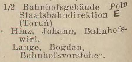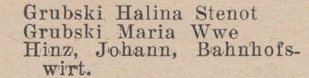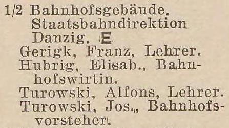 Bahnhofstraße 1: Josef Wiczlinski, Emil Friedrich. Spis z 1895 roku. Przekazała Grażyna Niemyjska.