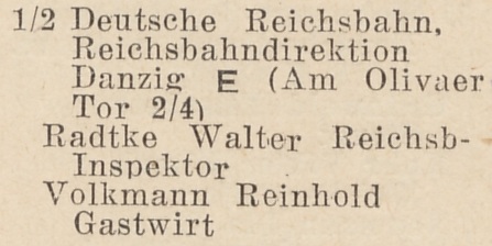 Eisenbahnstation Oliva. Książka telefoniczna z 1925 roku. Zbiory Mirosława Piskorskiego.