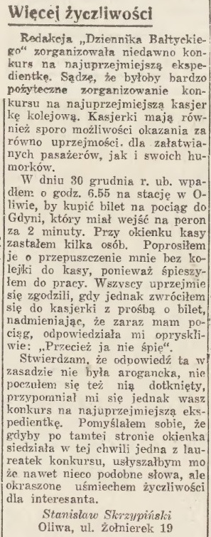 Hinz Jan , Oliwa, Dworzec (salka dla zebrań do dyspozycji).