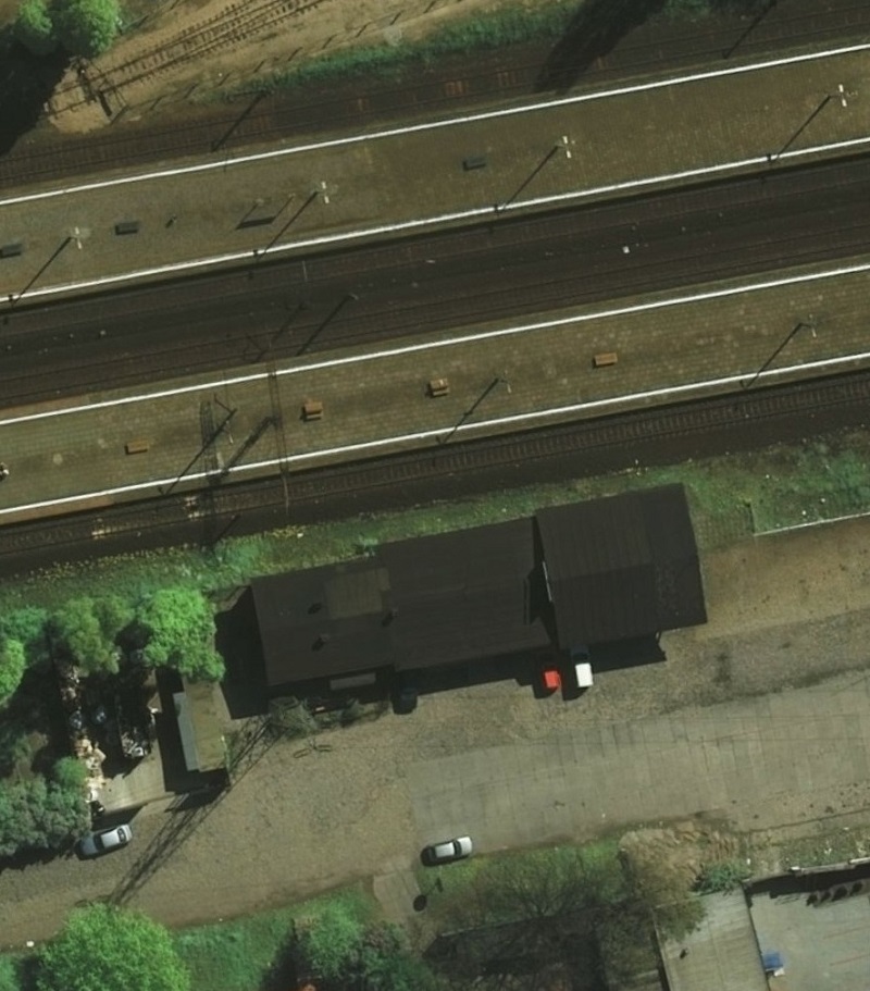 Fragment peronu i torowiska z lotu ptaka. Lata 30 XX wieku. Herder Institut, Gdask na fotografii lotniczej z okresu międzywojennego, Wrocław 2010, str. 78.