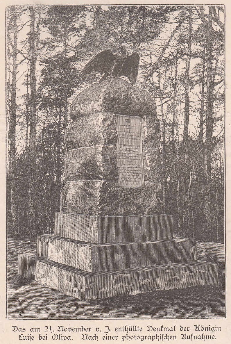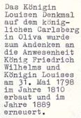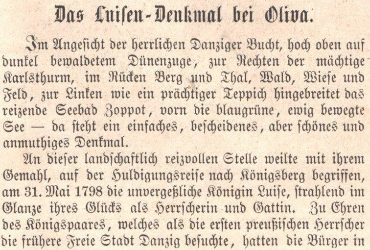 Das Königin Louisen Denkmal auf dem königlichen Carlsberg in Oliva wurde zum Andenken an die Anwesenheit König Friedrich Wilhelms und Königin Louises am 31. Mai 1798 im Jahre 1810 erbaut un im Jahre 1889 erneuert.