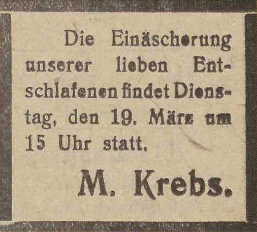Arndt, Johann, Arb. Bankewitz, Anton, Arb. Bieschkowski, Johann, Schäfer. Junski, Karl, Arb. Mosa, Franz, Arb. Prehna, Rosalie, geb. Schwabe.
