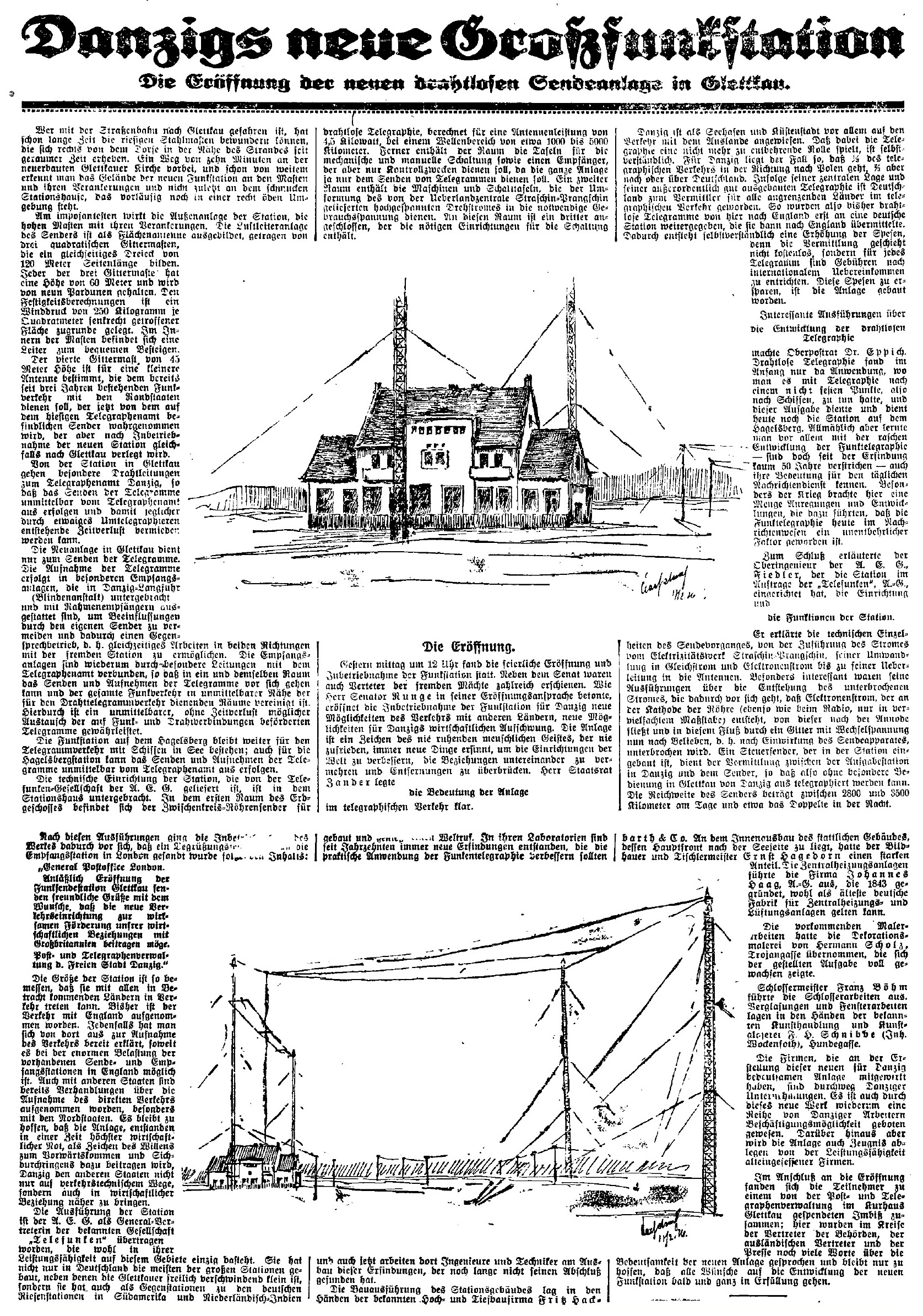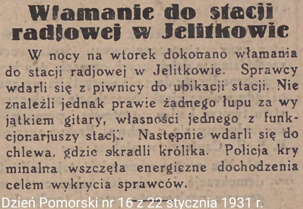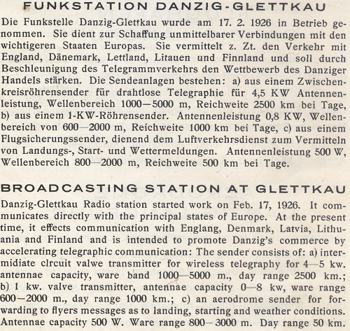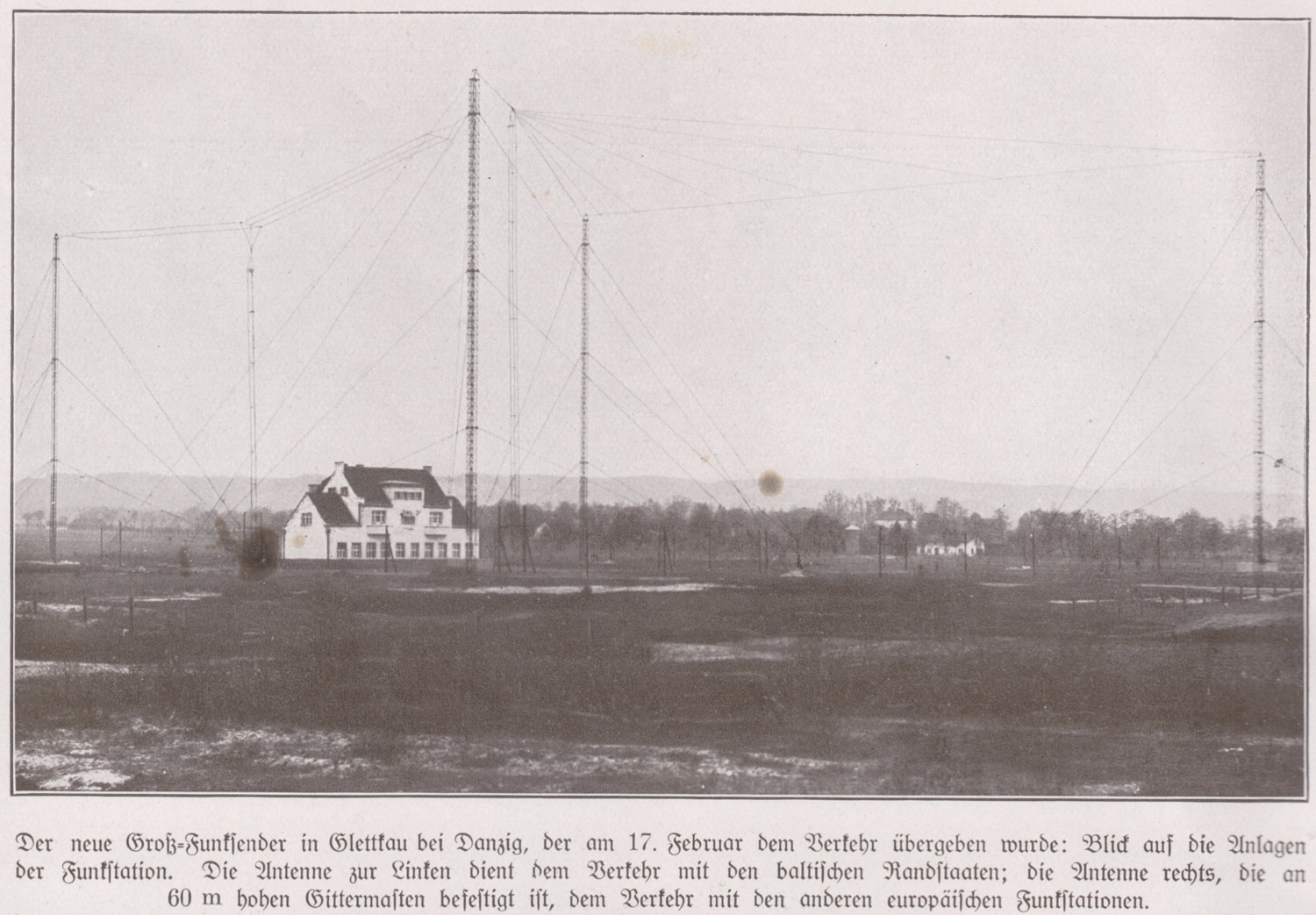 Stacja Radiowa w Jelitkowie (Funkstation Glettkau) oddana została do eksploatacji o godzienie 12:00 (uruczystość) w dniu 17.02.1926 roku przy ul. Wypoczynkowej (Wochenendkolonie). Miała za zadanie przyspieszyć ruch telegraficzny i wzmocnić konkurencyjność Gdańska.