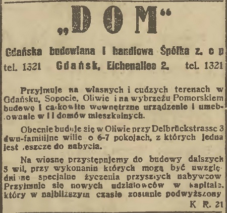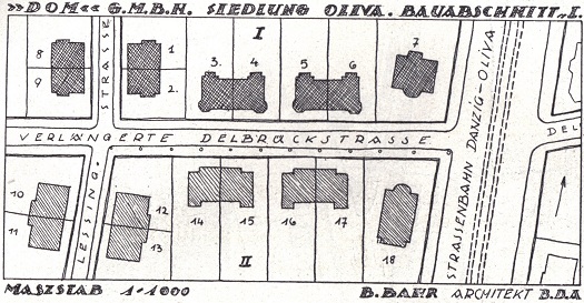 Fragment mapy z 1919 roku: Paul Rosenberg, Waldkarte von Oliva u. Zoppot, Danziger Verlags-Gesellschaft m.b.H. Zbiory Piotra Leżyńskiego.