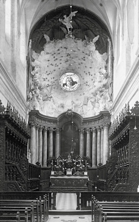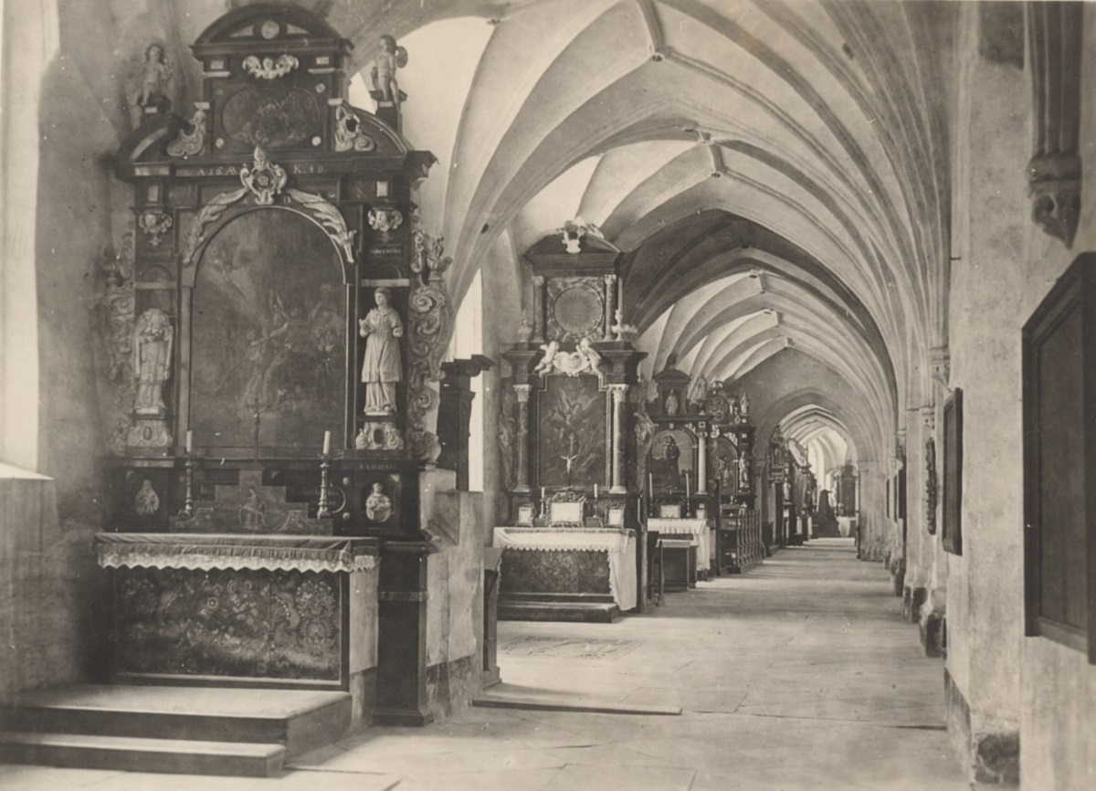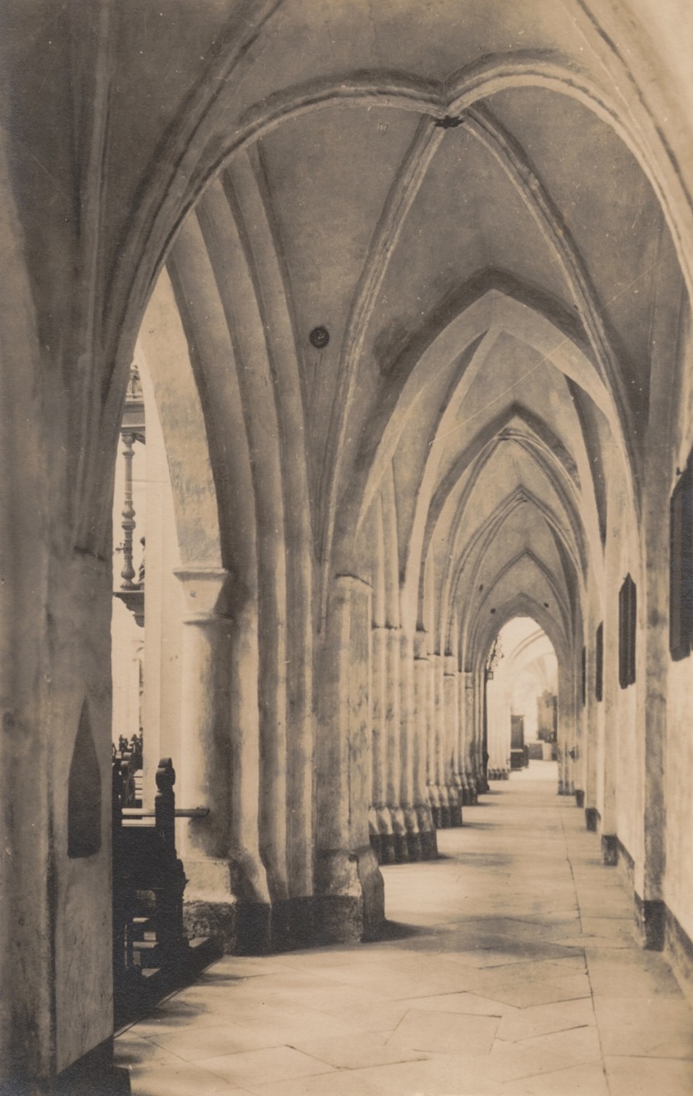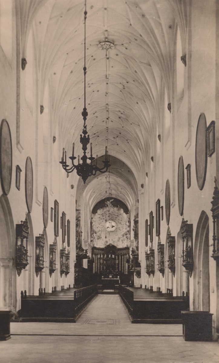 Na fotografii widoczne są nowe ławki wykonane za czasów proboszcza Nikolausa Kryna (1883-1904). Brak tu kraty żelaznej, którą w 1906 roku przeniesiono bliżej portalu głównego.