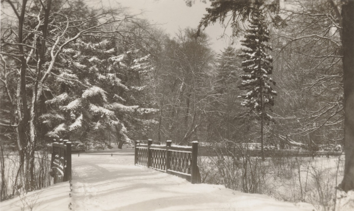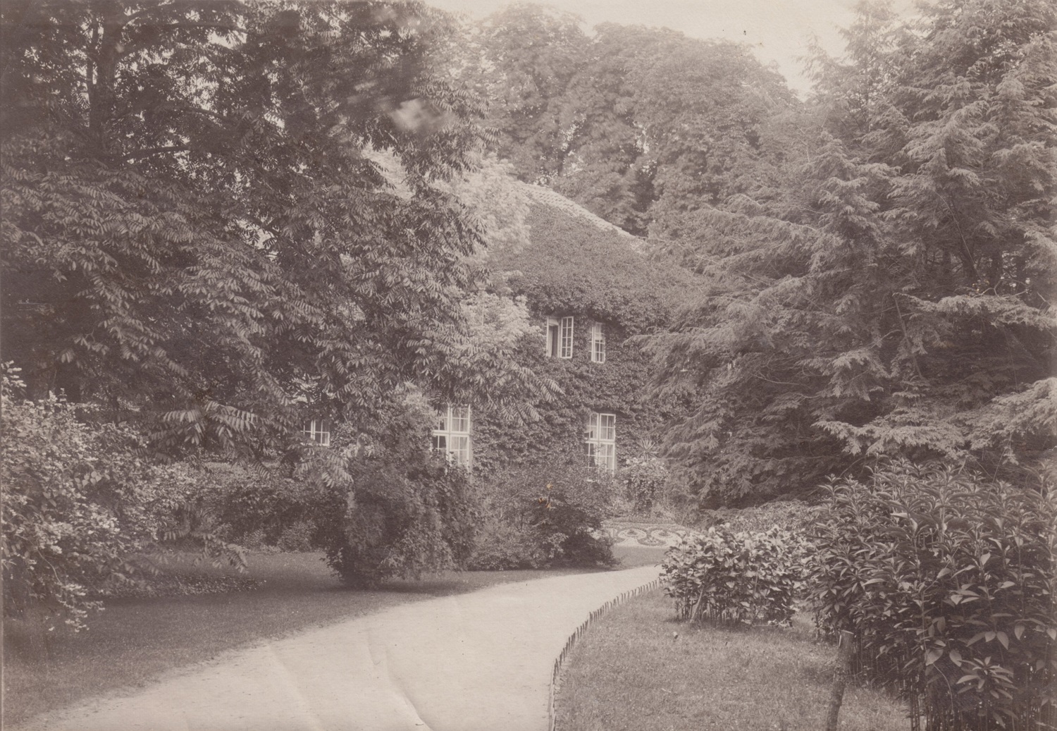 Północna część Parku Oliwskiego. Fasada wschodnia starego Pałacu Opatów. Widok z pierwszej dekady XX wieku.