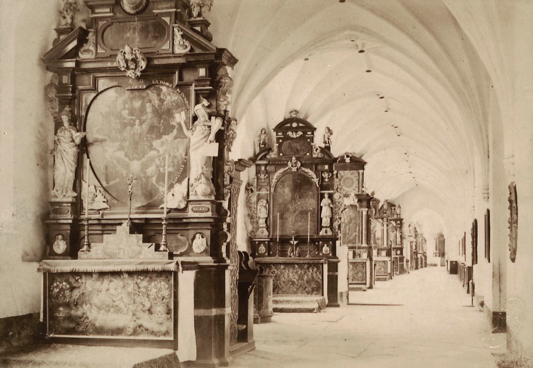 1891. Nawa Północna Katedry Oliwskiej. Po lewej ołtarz Wszystkich Świętych z 1653 roku za nim ołtarz św. Szczepana z 1649 roku oba fundacji opata Kęsowskiego.