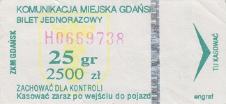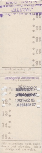 Bilety jednorazowe ZKM z lat 90-tych XX wieku.