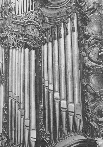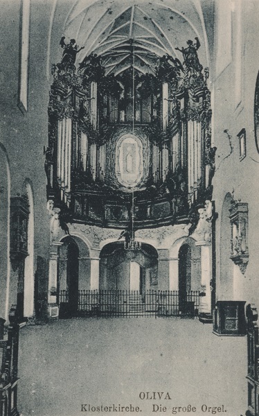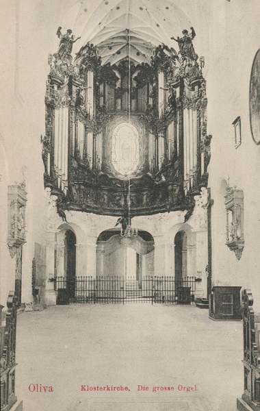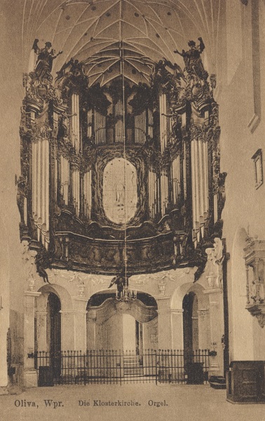 Do roku 1577 świątynia posiadała już dwoje organów, które zostały tego roku przez Gdańszczan zniszczone. Za opata Adlera zostały zbudowane nowe przez Christiana Neymanna w 1603 r. O nich nic pewnego nie można powiedzieć. Nie odpowiadały jednak wymaganioim konwentu, gdzie śpiew i muzyka stały na wysokim poziomie.