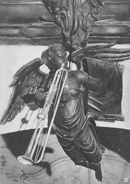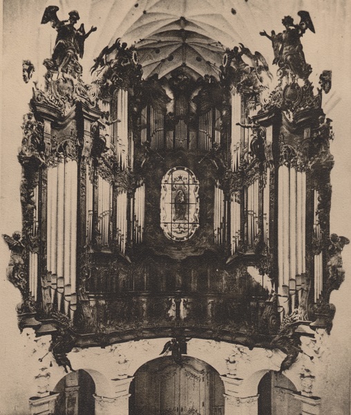 Już 1748 r. postanowiono oba organy zamienić na inne i prace powierza konwent Janowi Wulfowi, który był budowniczym organów, mieszkał w Gdańsku, pochodził z Warmii. Mistrz Jan pracuje około 25 lat nad swym dziełem i kończy je jako brat zakonny, wstępując do cystersów i przybierając imię Michała. Jego dziełem były najpierw małe organy w nawie bocznej. Do ich budowy użył starego materiału, zwłaszcza piszczałek. Te organy służyły dla potrzeb mnichów i pomniejszych nabożeństw. Po ich wykonaniu udaje się mistrz do Niemiec i Holandii, by się w sztuce budowy organów bardziej zaawansować. Po trzech latach wraca i zaczyna budowę wielkich organów. Ma problem do rozwiązania, by na małej stosunkowo przestrzeni chóru wznieść potężne dzieło. Okno frontowe świątyni przeszkadza, zamurować okna nie sposób. Ze zadania mistrz wywiązuje się świetnie. Okno zamienione zostaje na witraż, którego treścią jest Matka Boska z Dzieciątkiem Jezus na ręku. Piętrzące się szeregi piszczałek organowych, oprawnych w piękny masyw rzeźbionych obramowań, tworzą niejako ozdobę witraża. Muzyka organów ma się stać chwałą ku czci Bogarodlzicy. Witraż został wyjęty i na czas wojny okno zostało zamurowane. Organy obecnie posiadają 101 registrów (głosów rzeczywistych), około 6338 piszczałek. Stół-klawiatura pierwotnie miał być w środku chóru, by grający mógł widzieć wielki ołtarz, zaszły zmiany i klawiaturę umieszczono z boku, jak i obecnie się znajduje. Stół posiada 4 manuały ruchome i pedały odpowiadające 32 registrom. Najmniejsze piszczałki są grubości ołówka, największe zaś sięgają 10 m długości. Chyba nie ma innych organów na świecie, któreby w tak artystyczny sposób miały zmajstrowany dopływ nie już fali powietrza, ale silnego prądu wiatru wprawiającego w ruch potężną machinę, ożywiającego ją, pobudzającego do działania: Słońca zaczynają się kręcić, gwiazdy poruszać, dzwonki wydawać delikatne podźwięki, aniołki grać na fletach i trąbkach, które im wdzięcznie w rękach się poruszają. Nad tak ożywioną całością panuje potęga dźwięków, które zda się gdzieś z górnych sfer spływają, gdy do manuałów zasiądzie artysta-muzyk i uderzy w masyw klawiszów z kości słoniowej i w hebanowe półtony.