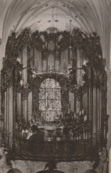 Po śmierci Wulfa ostatecznie wykończył organy Andrzej Delic. W latach 1834 i 1837 były pierwsze większe remonty, w latach zaś 1863-1865 mistrz organowy Kalikst ze Szczecina za cenę 6000 talarów dokonał pierwszej i gruntownej przebudowy. W 1938 r. Goebel, Gdańszczanin, dokonał dalszej przebudowy. W czasie działań wojennych zniszczono szereg piszczałek pomniejszych, wiele z tego zginęło, jakaś barbarzyńska ręka roztrzaskała stół-klawiaturę i przecięła kable prowadzące do miechów, niszcząc precyzyjne instalacje elektryczne. W 1945-46 roku organy stopniowo doprowadzano do porządku, w 1947 r. dokonano większej naprawy, tak, że całość z małymi brakami jest już uruchomiona. Wielkie organy są połączone kablem elektrycznym z małymi organami, które się znajdują na emporze po prawej stronie południowego transeptu. To sprawia miłe złudzenie, że w pewnym momencie nie słychać wielkich organów, choć grający manipuluje przy klawiszach, ale gdzieś z głębi świątyni płyną melodyjne dźwięki dochodzące z niewidzialnych instrumentów.