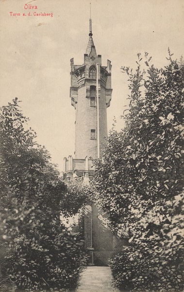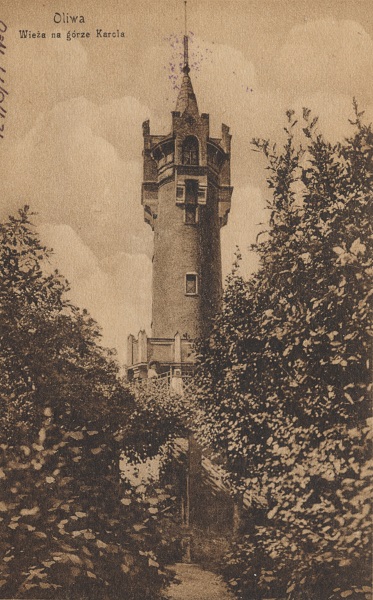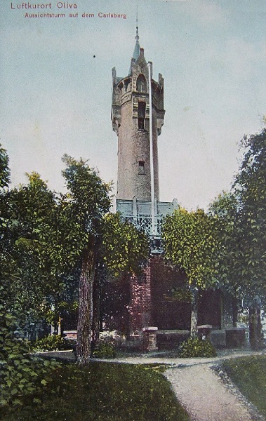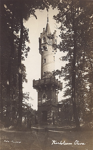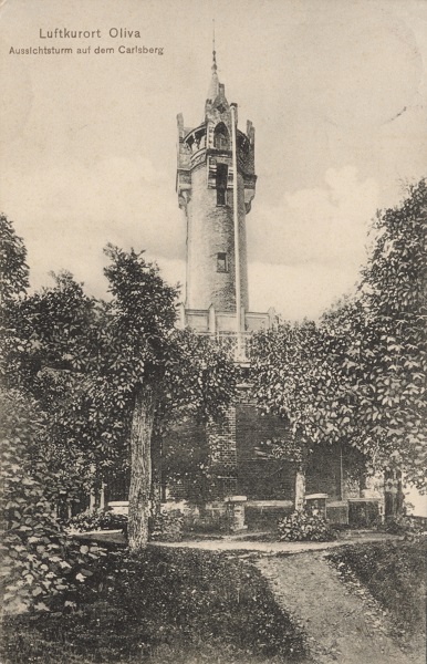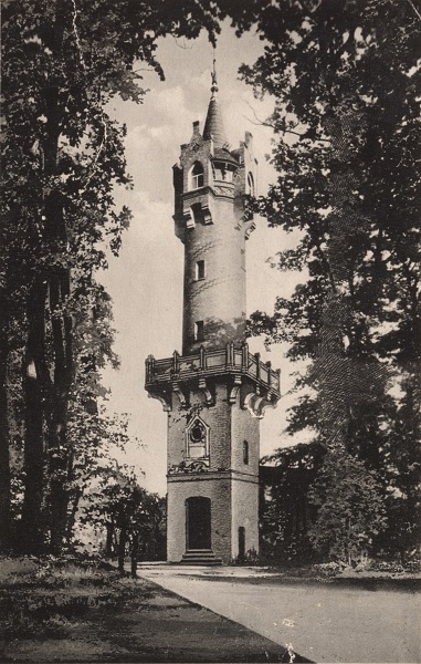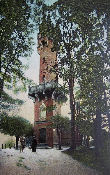 Murowaną wieżę widokową wybudowano w 1882 roku. Za wstęp na nią w 1894 roku pobierano 10 fenigów. W dniu 22 marca 1945 roku niemieccy saperzy wysadzili wieżę w obawie przed wykorzystaniem jej do obserwacji pola walk przez wojska radzieckie.