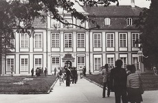 (obecnie im. Adama Mickiewicza). Część południowo-zachodnia urządzona w poł. XVIII w. staraniem opata Rybińskiego, rokokowa. Część północno-wschodnia z końca XVIII w. urządzona została w stylu angielskim. Poza licznymi okazami nieraz bardzo starych, rzadkich drzew i krzewów zachowany został tutaj dawny układ założenia ogrodowego, troskliwie pielęgnowane trawniki, kwietniki, strzyżone aleje, 4 stawy, wodospad, półkoliste groty szeptów, a w części północnej 2 zadrzewione, sztuczne pagórki. Palmiarnia i cieplarnia, jakkolwiek później przebudowane, w zasadzie pochodzą jeszcze z XVIII w. Część zachodnia palmiarni dobudowana w 1954 r. W sąsiedztwie palmiarni - ogród skalny założony w okresie międzywojennym. W ostatnich latach założono na wschód od palmiarni duży ogród botaniczny.