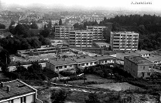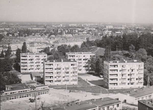 budowane było w latach 1959-1967 przez ZMS-owską spółdzielnię osiedlowo-mieszkaniową zarejestrowaną dwa lata wcześniej. Budową kierował inż. Mieczysław Szumski. Kamień węgielny pod pierwszy 9 piętrowy wieżowiec przy ul. Rodakowskiego wmurowano w dniu 21 marca 1959 roku. Aktu wmurowania dokonał przewodniczący Miejskiej Rady Narodowej Stanisław Szmidt. Na początku lat 70 XX wieku osiedle otrzymało patrona, któremu przy ulicy Chełmońskiego w okolicy skrzyżowania z ulicą VII Dwór postawiono pomnik. Podobiznę Janka Krasickiego wyrzeźbił w kamieniu przywiezionym z Gdyni prof. Wiktor Tołkin. W dniu 26 lutego 2007 roku Rada Miasta Gdańska zdecydowała usunąć pomnik. Zdemontowano go w dniu 24 lipca 2007 roku. W latach 60 i 70 XX wieku atrakcjami osiedla były: restauracja "Kasztel", samolot na wzgórzu przy ul. Rodakowskiego i stok narciarko-saneczkowy z wyciągiem na końcu ul. Rodakowskiego.